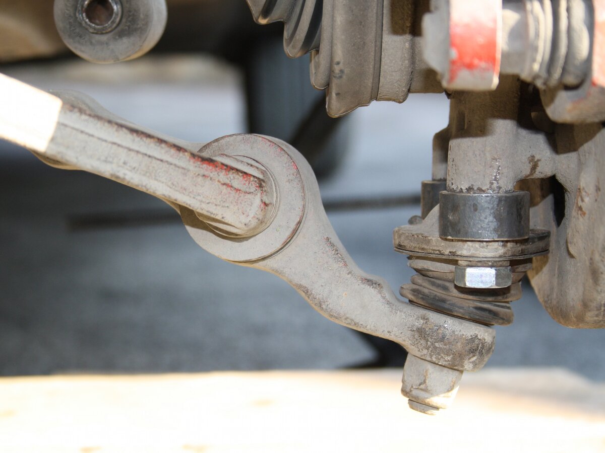 Осмотрите шаровые шарниры, чтобы убедиться, нужно ли их заменить . Выясните, есть ли у вашего автомобиля подвеска со стойками или рычаг управления, а затем проверьте шаровой шарнир, либо подняв рычаг рядом с шаровым шарниром, чтобы проверить люфт колеса, либо поддомкратив автомобиль и используя монтировку. для проверки люфта колес в подвеске со стойками. Снимите колесо и получите доступ к шаровой опоре. В зависимости от узла рулевого управления может также потребоваться отодвинуть тормоза. Если это так, используйте трос, чтобы повесить тормоза и не болтайте их за тормозные магистрали. Вам также нужно будет ослабить крепления, удерживающие рычаг управления или стабилизатор поперечной устойчивости, чтобы у
