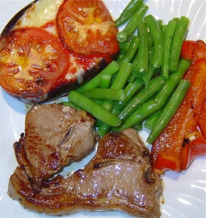 Жареные ломтики свинины с овощами Всем моим дорогим подписчикам огромный привет! Сегодня будем с Вами готовить вкусный ужин. Каждые выходные я балую мою семью этим сытным блюдом. Нам понадобятся продукты: - 800 г. свинины, - 2 шт. репчатого лука, - 800 г. клубней картофеля, - 4 стручка перца или фасоли, - 6 шт. помидоров, - 2 ст. л. свиного смальца, - 3 ст.л.бульона, - тмин, молотая паприка, соль, черный перец, лавровый лист на глаз Способ приготовления: Луковицы с картошкой очищаем, промываем и на разделочной доске нарезаем ножом, лук полукольцами, а картофель пополам. Мясо нарезаем на порционные куски, слегка отбиваем. Ставим глубокую сковороду на огонь, наливаем в нее 2 ложки жира, перекладываем порционные куски мяса в сковороду, обжариваем с обеих сторон, переворачивая их деревянной лопаткой до образования золотистой корочки. Посыпаем солью, перцем и выкладываем на отдельное блюдо. В этом же жире подрумяниваем подготовленный лук, затем наливаем горячий бульон и кладем разрезанный