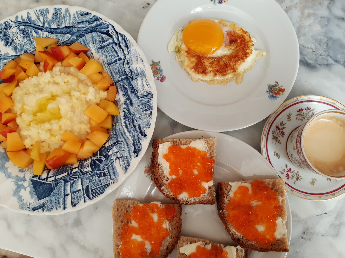 О своих запасах продуктов и планах по бюджету на питание в сентябре я рассказывала ЗДЕСЬ В этом месяце я провожу марафон Готовим из запасов, чтобы максимально доесть все имеющиеся дома продукты и освободить морозилку и шкафы. КАТАЛОГ РЕЦЕПТОВ - здесь все рецепты и полезные статьи по экономии, которые есть на канале Каталог: все статьи по экономии и ведению бюджета Собиралась сегодня с утра ехать в магазин. Но чего-то заленилась. В субботу у нас всегда пробки с утра - выезжают из Москвы на дачи. Решила перенести поездку на утро воскресенья, когда машин поменьше. Так что мы сегодня снова Готовим из запасов! на #завтрак сегодня опять сварила кашу. Сегодня у нас пшенная. Поставила в мультиварке вариться, а сама пошла гулять с собакой. Пришла - каша готова. Ели кашу с топленым маслом и крымскими сливами. К кофе сделала бутерброды с икрой, муж еще шоколадку доставал Lindt с имбирем и лимоном, но я не ела. Зато сделала себе в качестве эксперимента ленивый хачапури с яйцом (а ля по-аджарски),