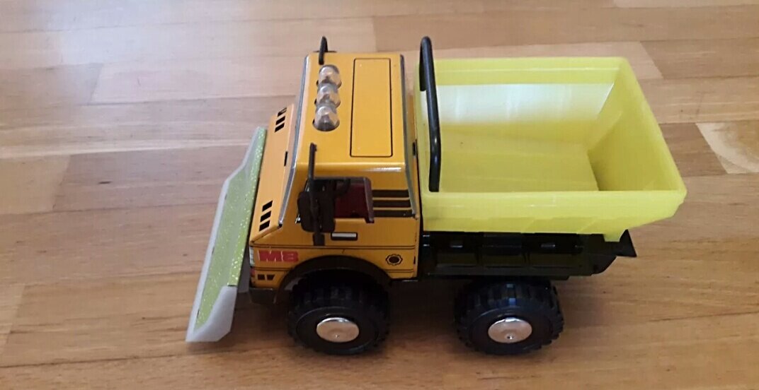 Машинка некомплектная: нет ковша (отвала), боковых зеркал и перекладины в кузове