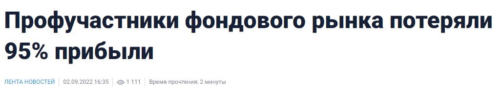Банк России обнародовал некоторые данные о финансовых результатах деятельности представителей финансового сектора экономики. Напомню, что с февраля 2022 года они были засекречены. Так, например, в "Обзоре ключевых показателей профессиональных участников рынка ценных бумаг" сказано, что прибыль финансовых компаний со статусом профессионального участника фондового рынка (это биржи, брокеры, инвестиционные фонды и т.д.) по итогам первого полугодия 2022 года упала на 95%. Основной причиной такого резкого падения рентабельности, по оценкам ЦБ, стало снижение торговой активности клиентов и выручки на фоне существенного роста издержек. В денежном выражении чистая прибыль профучастников фондового рынка за полугодие составила 600 млн рублей, но более половины из них завершили свою деятельность с убытком. В банковском секторе ситуация еще хуже - он закончил полугодие с чистым убытком 1,5 трлн рублей, но первый зампред ЦБ Дмитрий Тулин, комментируя этот показатель, заявил, что это "не самая дорог