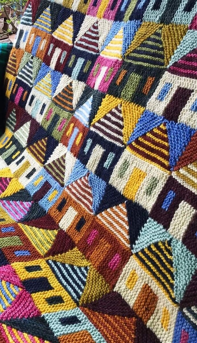 Из таких вязаных блоков - домиков можно собрать плед, подушку или коврик. Их можно вязать спицами или крючком, большие и маленькие, яркие и не очень. Пойдут в дело любые остатки пряжи 🧶🏠 Всем добра и неиссякаемого вдохноаения 🍀✨☀️