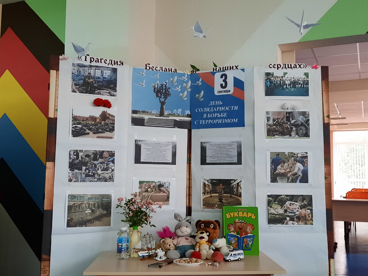 С 1 по 3 сентября в Центральной библиотеке открыта фотовыставка «Трагедия Беслана в наших сердцах», посвященная Дню солидарности в борьбе с терроризмом. Эта памятная дата в России отмечается ежегодно 3 сентября. Она связана с событиями в Беслане 1-3 сентября. В 2004 году отряд террористов захватил школу №1 в Беслане, в это время там проходила праздничная линейка в честь Дня знаний. Террористы захватили более 1 тыс. человек, в том числе малолетних детей, и 3 дня удерживали заложников в школьном спортзале. В этот день по всей стране проходят панихиды, возлагаются цветы и проводится минута молчания, а в небо выпускают белых голубей – символ мира.🕊 К этой дате Центральная библиотека приурочила акцию «Будьте бдительны!» для детей и подростков. На детских площадках библиотекарь Наталья Глебова рассказывала детям и напоминала родителям почему нельзя трогать предметы, найденные на улице. И в случае обнаружения таких предметов к кому стоит обратиться. В завершение акции детям и подросткам