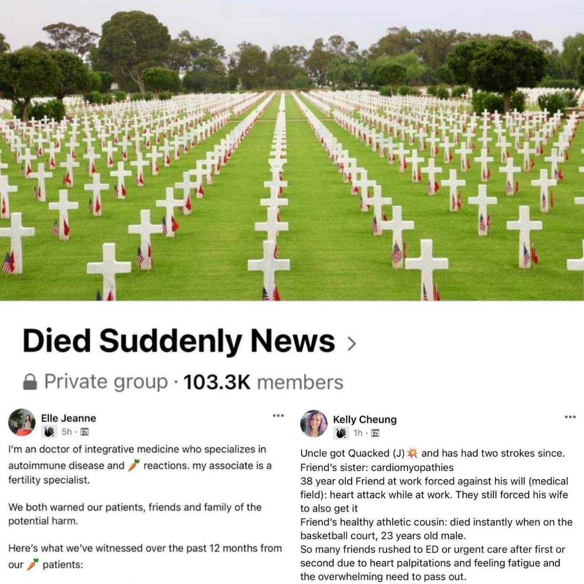 Количество участников приватной группы на Facebook под названием «Новости о внезапно умерших» за несколько недель выросло с 10 000 до более чем 100 000 человек. Многие люди делятся историями о близких, умерших после вакцинации.
