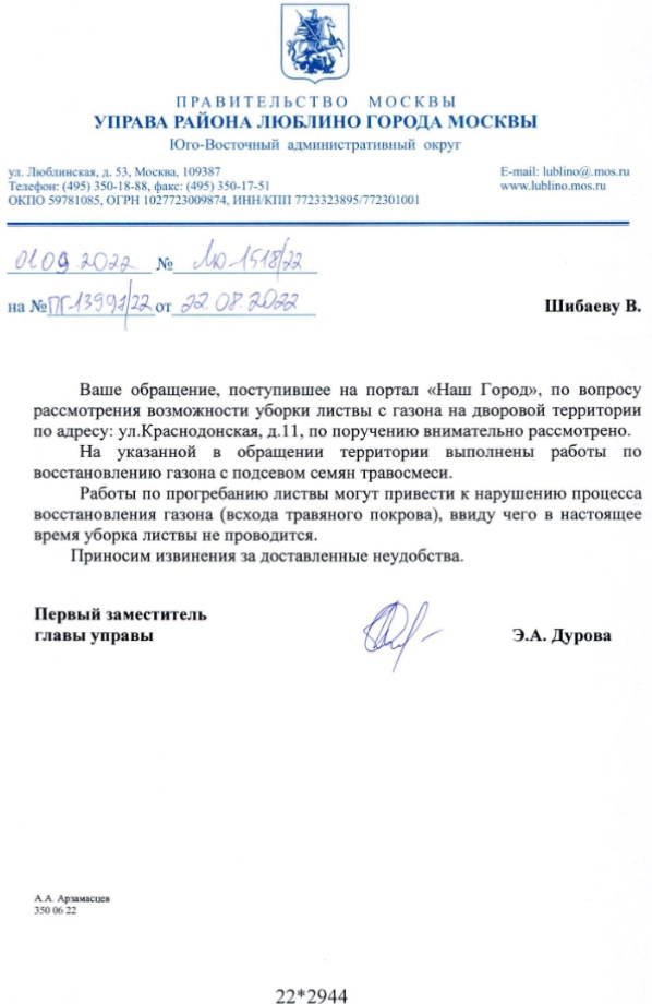 Такое «благоустройство» двора в городе Москве жителям не нужно (продолжение https://vk.com/wall301746382_4044 )! Россия — г.Москва — ЮВАО — Люблино — Краснодонская улица д.11: https://2gis.ru/moscow/geo/4504235282598731 Во дворе местные власти не могут решить проблему, уже два месяца, с отсутствием травяного покрова на газоне https://gorod.mos.ru/index.php?message=44035692 Только присылают отписки, вот одна из них, от управы района Люблино города Москвы, в лице первого заместителя главы управы Э.А.Дуровой «...выполнены работы по восстановлению газона с подсевом семян травосмеси...»: Работы по восстановлению газона не выполнены, газон не восстановлен и выглядит сейчас так: