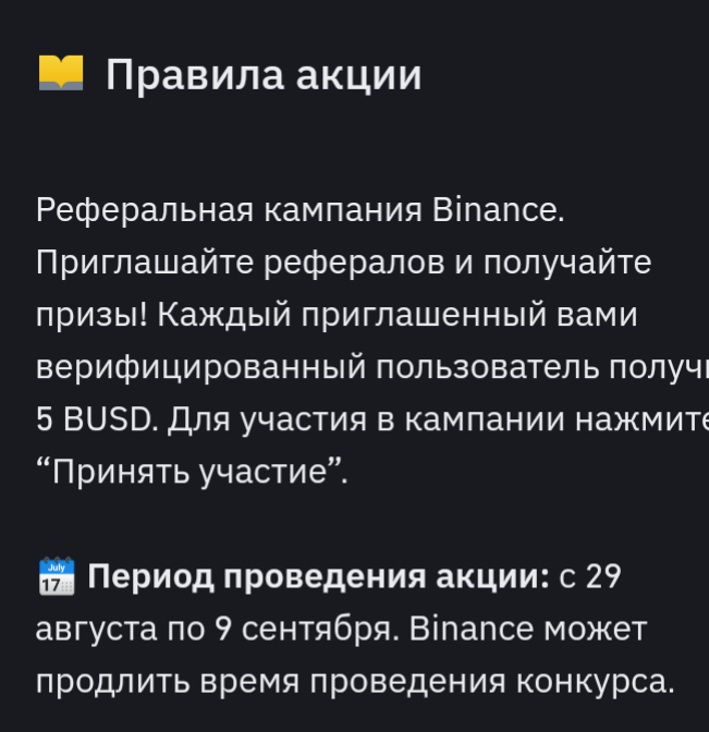 Как получить от 5 до 255 баксов не потратив на это ни копейки? Выбрал именно эту возможность заработка в первой своей статье на канале, потому что времени до окончания этой акции остаться совсем не много, точнее до 9 сентября. В чем заключается фишка этой халявы!? Многие наверное уже знакомы с криптовалютной биржей binance, так вот эта биржа, для своей популяризации создала акцию. Зарегистрировавшись на бирже binance и пройдя простую верификацию минут за 10 - 15 мы получаем 5 баксов на свой счёт на бирже, которые впоследствии можно будет вывести на свою карту. Самое интересное, если мы пригласим ещё кого то, друга, свата, брата и и.д, мы получаем ещё 5 баксов, да ещё и тот человек которого мы пригласили тоже получит 5 баксов. А если успеть пригласить 10, 20....50 человек, то это будут уже совсем другие деньги, и главное люди которых мы пригласили, тоже будут довольны. Поэтому на такие акции приглашать легко, кто же откажется от такого подарка в 5 S + ещё и такой возможности заработа