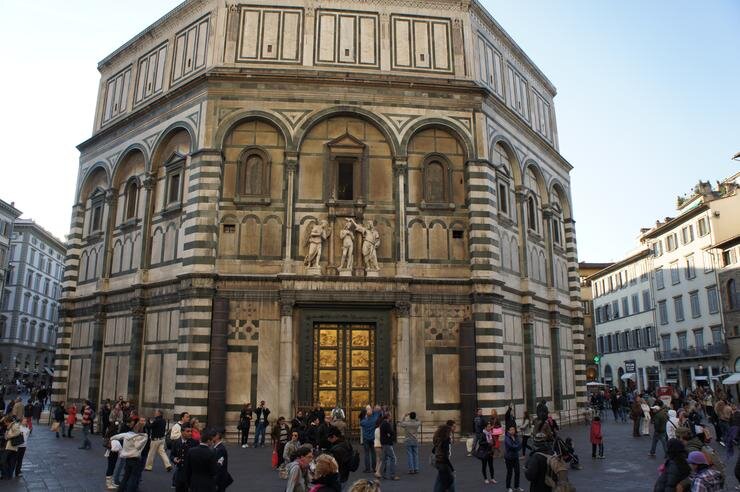 Победил на конкурсе блестящий рисовальщик Гиберти. Один из самых образованных людей своего времени, первый историк итальянского искусства, Гиберти, в творчестве которого главным были равновесие и гармония всех элементов изображения, посвятил жизнь одному виду скульптуры — рельефу. Его искания достигли вершины в изготовлении восточных дверей флорентийского баптистерия (1425—1452 гг.), которые Микеланджело назвал «Вратами рая». Составляющие их десять квадратных композиций из позолоченной бронзы передают глубину пространства, в которой сливаются фигуры, природа, архитектура. Они напоминают выразительностью живописные картины. Мастерская Гиберти стала настоящей школой для целого поколения художников. В его мастерской в качестве помощника работал молодой Донателло, в будущем великий реформатор итальянской скульптуры.