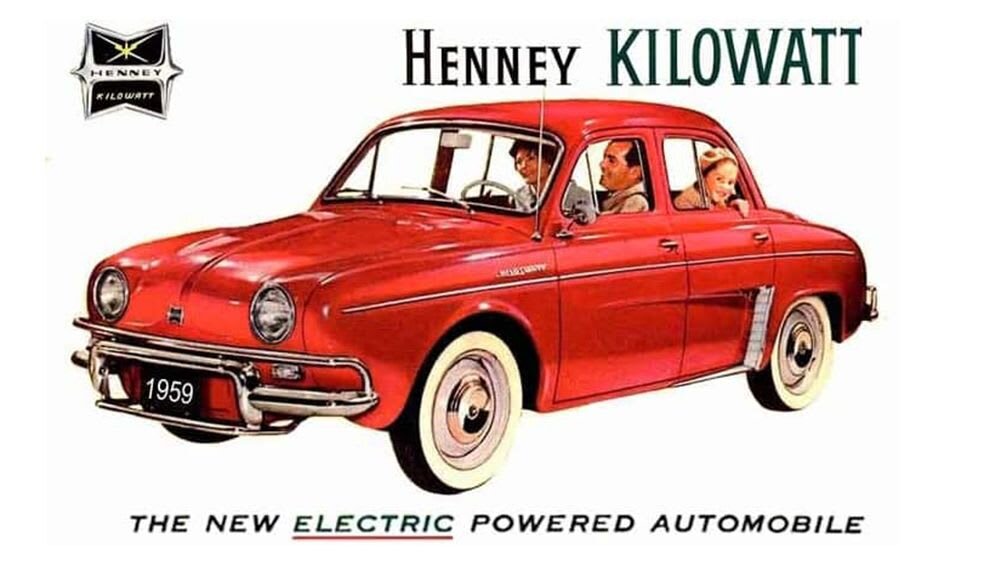 Да, у машин не было багажника, все свободное пространство в передней и задней части занимали батарейки и мотор. Однако весил это модифицированный Dauphine, который назвали Henney Kilowatt от 850 до 1000 килограммов. Что в общем-то не так уж и много. Но все равно получившийся экземпляр был тяжелее бензинового "француза" минимум на 300 килограммов. Как справлялась с этим стандартная #тормозная система не совсем понятно. Кстати заднего сидения у седана Kilowatt тоже не было. Там прикрытые куском напольного покрытия расположили контакторы и переключатели.