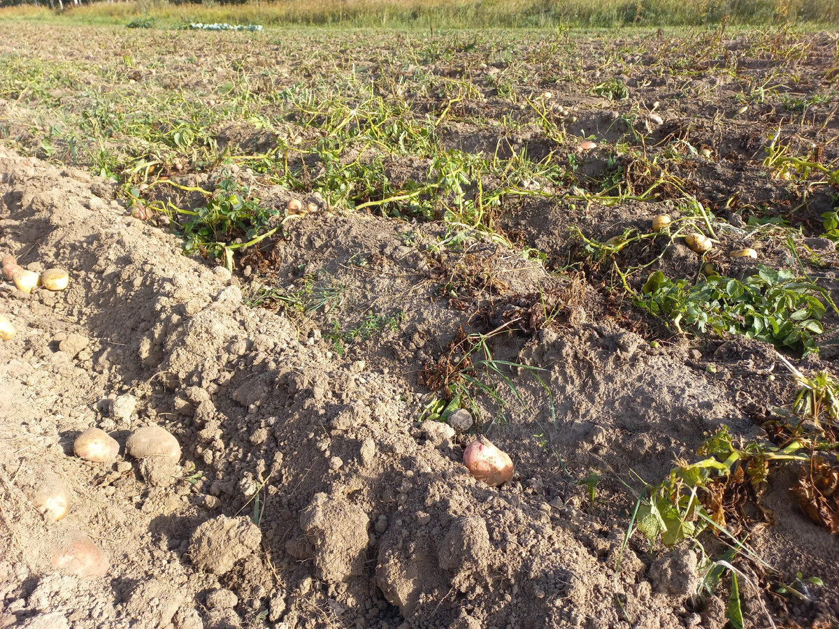 У нас заметно похолодало. Пока не пошли серьёзные дожди, решили выкопать картошку на усадьбе. Там у нас 10 соток и в наших краях это считается очень много. У нас же расчёт всегда идёт на неурожайный год, и если такой случится, с такой площади всегда можно будет обеспечить себя картофелем. Но в этом году с урожаем всё хорошо: Выращиваем замечательный сорт картофеля "Скарб", он на никогда не подводит. Даже в 2020, когда из-за дождей у многих картошка не уродилась, мы накопали себе и даже часть продали на семена. А ещё это очень вкусная картошка, она хороша в любом приготовленном виде, но лучше всего её жарить. Также на усадьбе посажено немного картофеля сорта "Аврора". В наших местах многие выращивают его благодаря хорошей урожайности и вкусовым качествам. Выкапываем картофель мотоблоком при помощи специальной копалки, которая рассекает гряду и выворачивает клубни наружу. Их мы собираем в кучи, чтобы просушить. А затем уже сортируем, выбирая по-отдельности крупный, семенной и мелкий ка