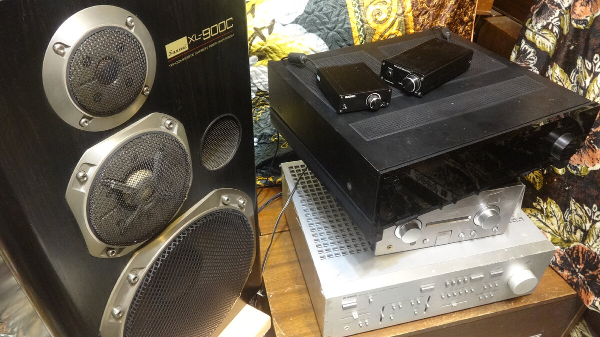 Затестить я его решил на колонках Sansui XL-900c 1983 года 90 тыс йен за штуку ,которые все обзорщики дружно называют лучшими в цене 70-90 тысяч (рублей).