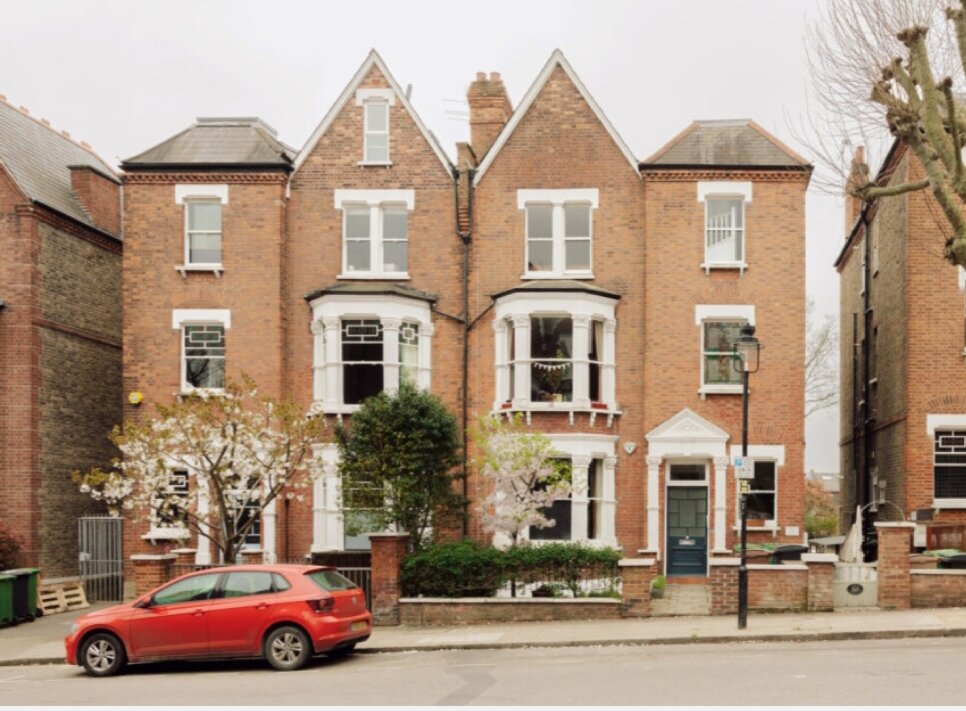 Здравствуйте, сегодня я расскажу вам об удивительно светлой двухэтажной квартире в центре Лондона. Квартира с двумя спальнями расположена на верхних этажах красивого викторианского дома из красного кирпича, на тихой, обсаженной деревьями улице, в красивом месте рядом с парком Хэмпстед-Хит. Площадь квартиры составляет почти 400 м. кв, а из квартиры открывается красивый вид на центр Лондона. Дом расположен в стороне от дороги. Он построен из красного кирпича в стиле эпохи Возрождения с элементами готики. Этот стиль характеризуется изящной лепниной на верхушках пилястр окон, входных колонн и центрального фронтона крыльца, а также крутой шиферной крышей. Вход в квартиру находится на втором этаже и сразу ведет к красивой открытой лестнице, которая служит своего рода центральным элементом для квартиры и соединяет все этажи. Основные жилые помещения расположены на втором этаже: это просторная гостиная которая плавно переходит в кухню-столовую. В квартире самая простая отделка- белые сте