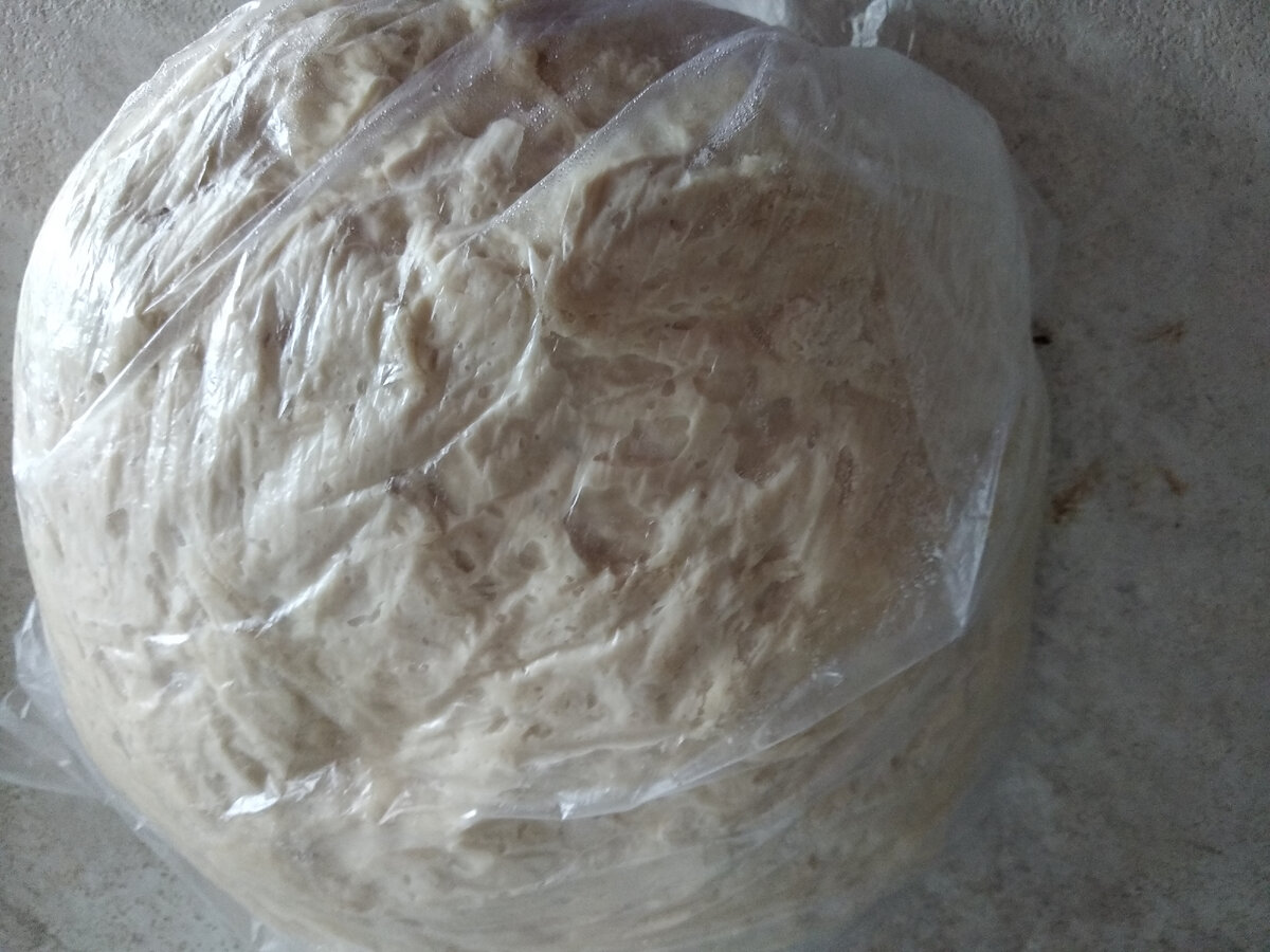 Сделала свое любимое заварное тесто. Для новичков: беру стакан горячей воды ,добавляю 2 ст.л растительного масла, 1 ч.л соли, 0,5 кг муки и замешиваю тесто. Горячо? Конечно!!! Сначала содержимое перемешиваю лопаткой, а потом руками ..Готовое помещаю в полиэтиленовый пакет и даю отдохнуть..