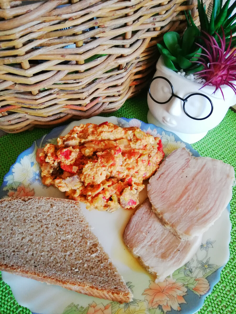 Всем доброго дня и хорошего настроения дорогие друзья и подписчики. Некоторое время назад я пролечила антибиотиками гастрит и смогла вернуться к привычеому питанию и подсчёту ккал. В моем рационе есть почти все продукты, кроме молочных и глютеносодержащих, но если молочку исключить просто, то с БГ все сложнее, времени в магазине я провожу теперь больше вчитываясь в состав продуктов и большая их часть, признаться, остаётся на полках. Сегодня в моей меню было мало белка, хотя порции блюд не уменьшала. Итак, по-порядку. #завтрак #яхудею #моеменю Хотела приготовить шакшуку новым способом, но получилочь нечто между скрэмбл с шакшукой 😊порция - 180 гр, накануне приготовила в пароварке свиной окорок по-тамбовски (тут все просто, берём хорошую корейку, удаляем весь видимый жир, натирает мясо смесью перца, соли и чеснока, можно добавить ч.л горчицы, заворачиваем в фольгу, 1 час даем промариноваться и отправляем в пароварку на 1 час. Я готовлю 10 минут на 100 грамм), порция-40 гр ломтик с