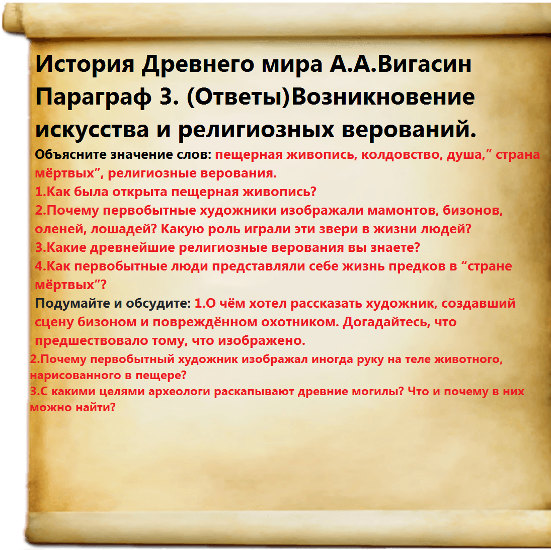 История Древнего мира А.А. Вагасин. Параграф 3. Возникновение искусства и религиозных верований (Ответы)