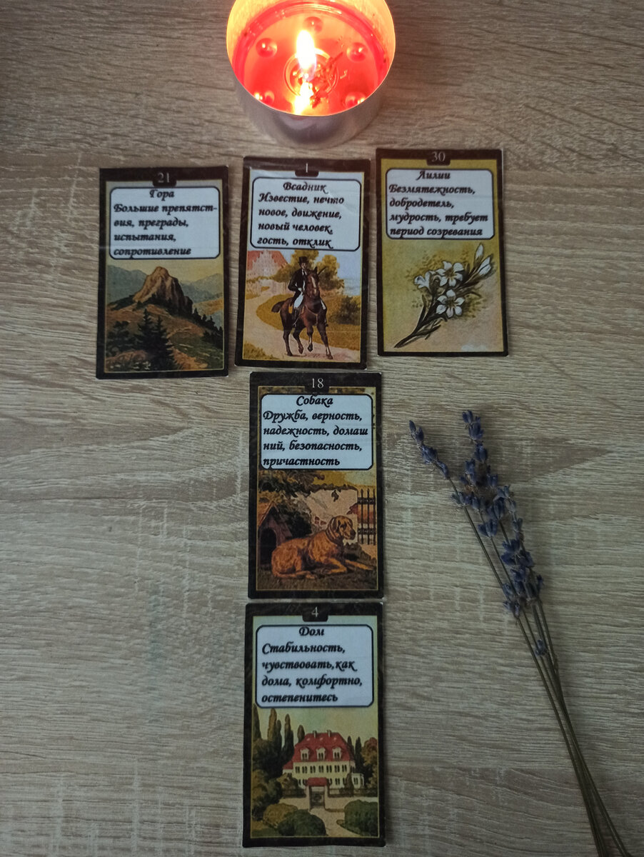 Доброго времени суток, мои дорогие. Сегодняшний расклад поможет тем, кому кажется что в их жизни ничего не происходит. Вам кажется, что у вас полный упадок сил и нет никакого развития событий. Пришло время обратиться к картам, давайте посмотрим, как можно с пользой провести это время. Первая карта – на что стоит обратить вам внимание, в этот период. Гора - это всегда разного вида препятствия. И их необходимо преодолеть, что бы дойти до своей цели. У вас есть грозный противник, который может быть как человеком, так и обстоятельствами на вашем пути. Разберитесь в сложившейся ситуации, без этого вы не сможете двигаться дальше, и предотвратите еще большие проблемы. Вторая карта – какие занятия или действия будут для вас максимально полезны. Всадник – карта активных действий и получения информации. Собирайте все новости, которые поступают к вам по беспокоящему вас вопросу. Проявите решимость и смелость, это поможет найти новый подход к ситуации. Третья карта – какой урок вы сейчас проходи