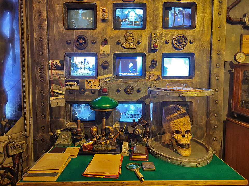 Мастера-уфологи воссоздали интерьер sancta sanctorum – советского пункта наблюдения за внеземной жизнью. Контакт советских ученых с представителями внеземных цивилизаций был, но это очень затуманенная