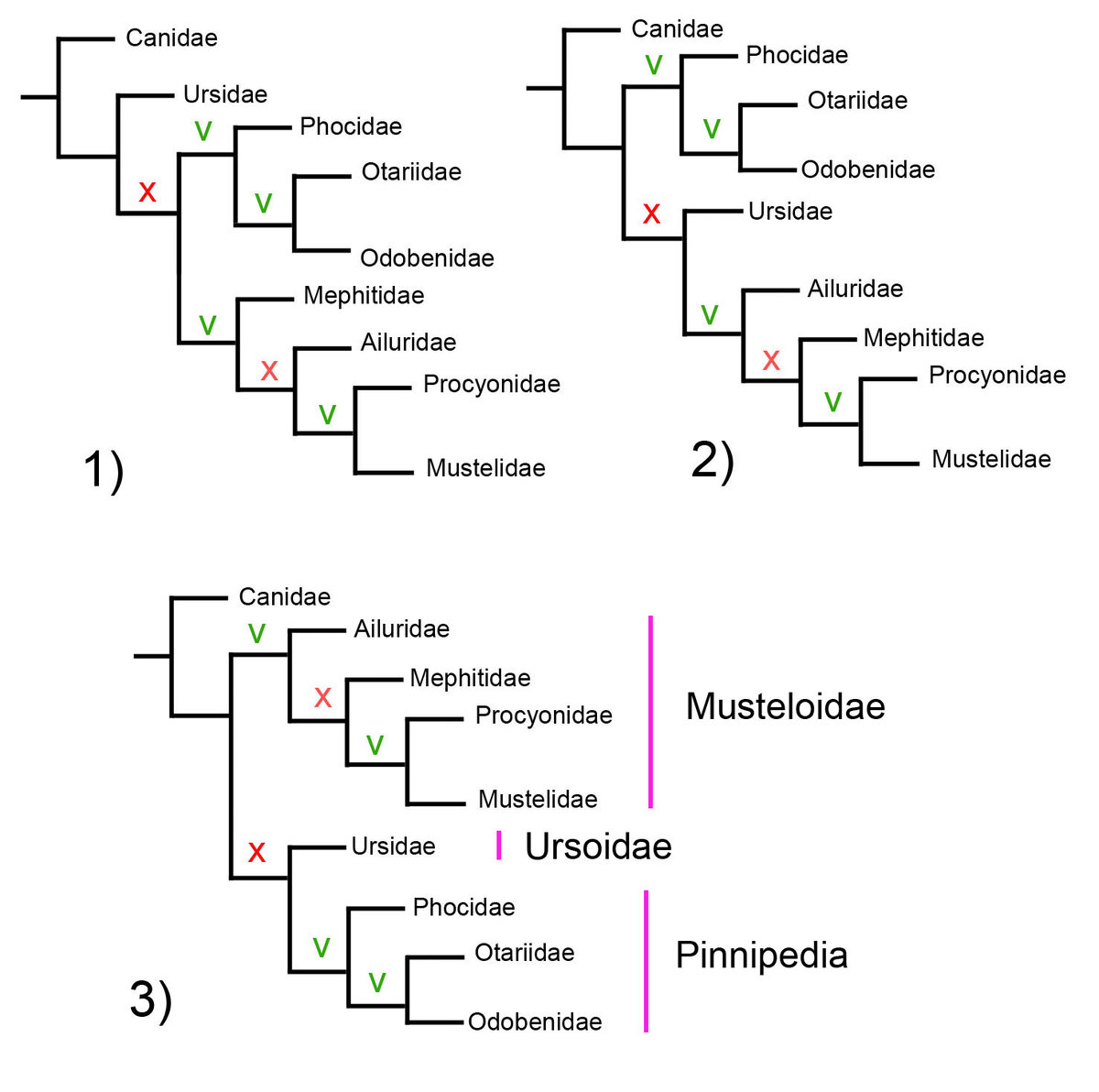 До этого я рассказала, как строить филогенетические деревья с помощью парсимонии. Теперь же я приступаю к теме, как эти деревья трактовать. Многое из этого также будет справедливо и для филогений, которые основаны на молекулярных данных. Первое, о чем необходимо знать, - это согласование деревьев. После парсимониального анализа у нас получается, как правило, несколько равноэкономных деревьев. Иногда больше 100 или даже 1000. Разумеется, работать с таким количеством деревьев очень сложно, и уж точно поместить их всех в публикацию будет невозможно. Для этого и нужно их согласовать. Как пример я приведу свою статью, где я ревизовала трибу клопов-слепняков Monaloniini (Namyatova & Cassis 2016). В морфологическом анализе у меня получилось 3480 равноэкономных деревьев в Nona, и 2380 деревьев в TNT. В таких случаях используют согласование деревьев, которое называется strict consensus (или строгое согласование). Как это делается? Для этого я взяла таксоны из статьи Doronina et al (2015) пр