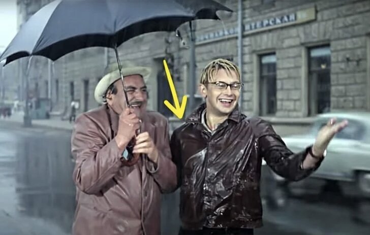Операция ,,Ы" и другие приключения Шурика Шурик попадает под сильный дождь. На кадре сверху видно, что вся его одежда промокла. Однако через минуту, когда он садится в автобус, его куртка уже практически сухая. Шурик «превращает» «Докторскую» колбасу в «Любительскую», вставляя в ломтик 4 таблетки снотворного. Однако, когда он кидает его собаке, в нем оказывается уже 5 таблеток. В сцене потасовки в автобусе из окна выпадают книжка Шурика и кепка Феди, однако уже в следующей сцене, в отделении милиции, все эти вещи оказываются при героях. Любовь и голуби В сцене, когда Дядя Митя приходит рассказать Наде свой сон о смерти Бабы Шуры, мы видим, что над рекой нет тумана Но тот резко появляется после смены плана.