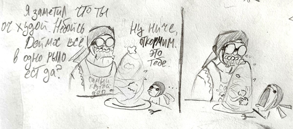 Что ж... Мне не стоит рисовать на голодный желудок. Во время рисования я накидал это... #скетч