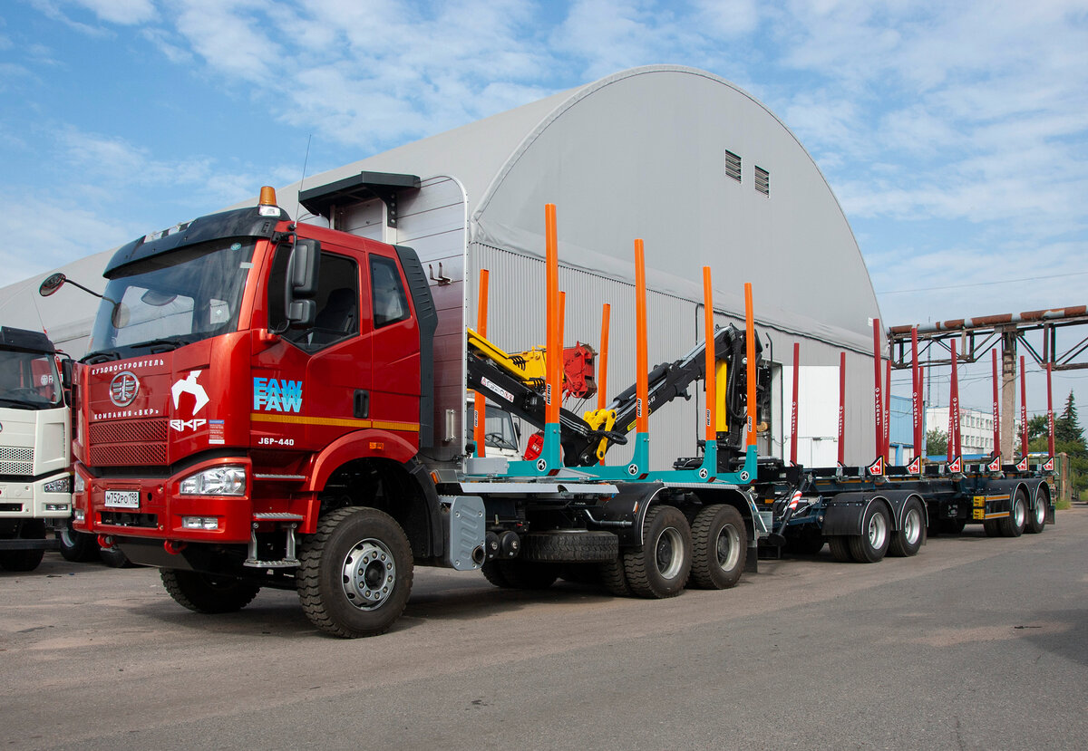 Компания «ВКР» предлагаем готовое "лесовозное" решение - автопоезд в составе сортиментовоза FAW J6 c КМУ Essel EC80S-93 и прицепа V-TRAILER для транспортировки сортимента. Выбор нашего предложения позволит Вам получить высококачественную технику по цене ниже европейских аналогов, обеспечить безопасную доставку сортимента в сложных условиях лесных дорог. Для экономической привлекательности предложения компания ООО «ВКР» предлагает увеличенный до 2-х лет гарантийный период* на прицепы V-TRAILER, а так же два ТО на сортиментовоз FAW в подарок.