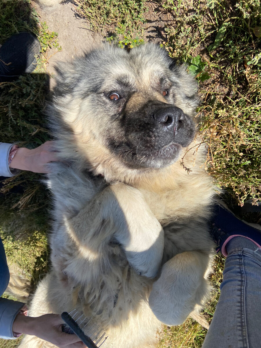 Воскресный день пошёл у нас не по плану. Мы приехали в Логово к 10 утра, пообщались со всеми собаками, помыли Дудусика и уже собирались выезжать домой, предвкушая заслуженный отдых и вкусный обед, как вдруг раздался звонок. "Она вернулась, она снова тут, нам удалось её привязать к дереву, но вам надо забрать её срочно!". Мы сразу поняли, о ком идёт речь. Начиная с середины августа в одно из СНТ по Симферопольскому шоссе периодически приходила измученная и худая кавказская овчарка. Заявители связывались с нами, просили помочь, но им никак не удавалось ее зафиксировать: то она убегала и не давалась им в руки, а то и вовсе исчезала на несколько дней. И вот этим душным воскресным днем эта кавказская овчарка буквально приползла снова в этот поселок и упала под березу, спасаясь от невыносимой жары. Заявители принесли ей воды в пакетике и привязали к дереву веревкой. Понятно, что надо было лететь туда на всех парах и спасать собаку. Мы вздохнули, простились с мечтой о воскресном борще и