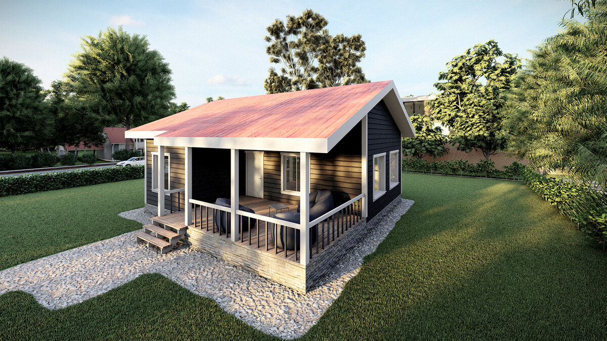 Готовый проект одноэтажного дома с терасой 9,6х9,5 - 87,7 м²