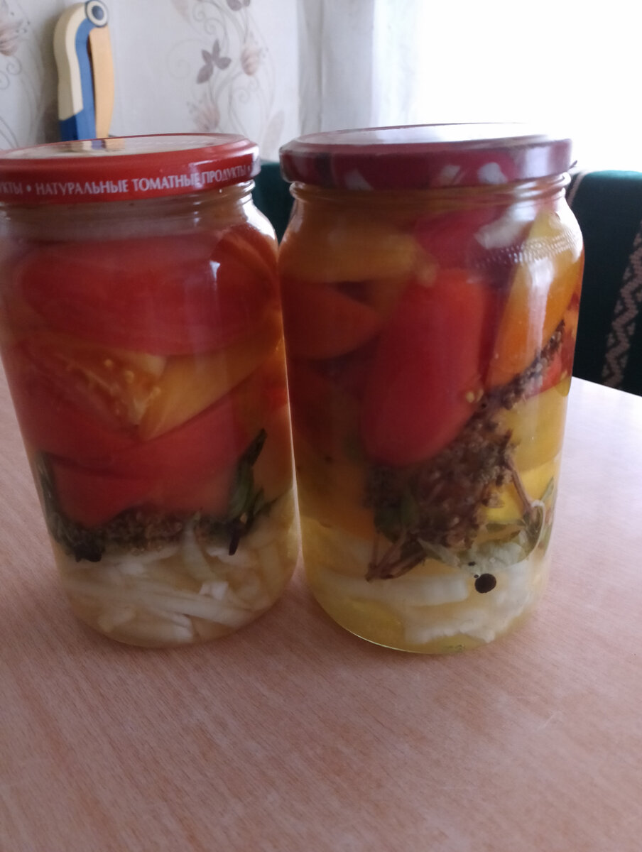 Многие хозяйки готовят на зиму консервированные помидоры с луком. Рецептов множество! Я хочу поделиться с вами своим. Эта закуска получается вкусной и красивой- яркие кусочки помидор и белый лук. К картофельному пюре с котлеткой идеальное дополнение)) И, как я люблю, готовится быстро и просто)) Ну что, приступим. Нам потребуется: Спелые твердые помидоры Лук (по одной крупной луковице на банку) Чеснок (1-2зубчика на банку) Веточки базилика Душистый перец Гвоздика Лавровый лист Растительное масло 70% уксус Для маринада на 1литр воды 3ст.ложки сахара и 1 ст.ложка соли Для начала моем и стерилизуем банки любимым вами способом. Помидоры моем, режем на небольшие одинаковые кусочки, вырезая основание плодоножки. Лук чистим и нарезаем полукольцами, толщиной 3-5 мм. В банки выкладываем небольшой слой лука. В каждую банку кладём по одному лавровому листу, 2-3 горошины душистого перца, 1-2 гвоздички, 1-2 нарезанных тонкими пластинами, зубчиков чеснока и небольшую веточку базилика. Цве