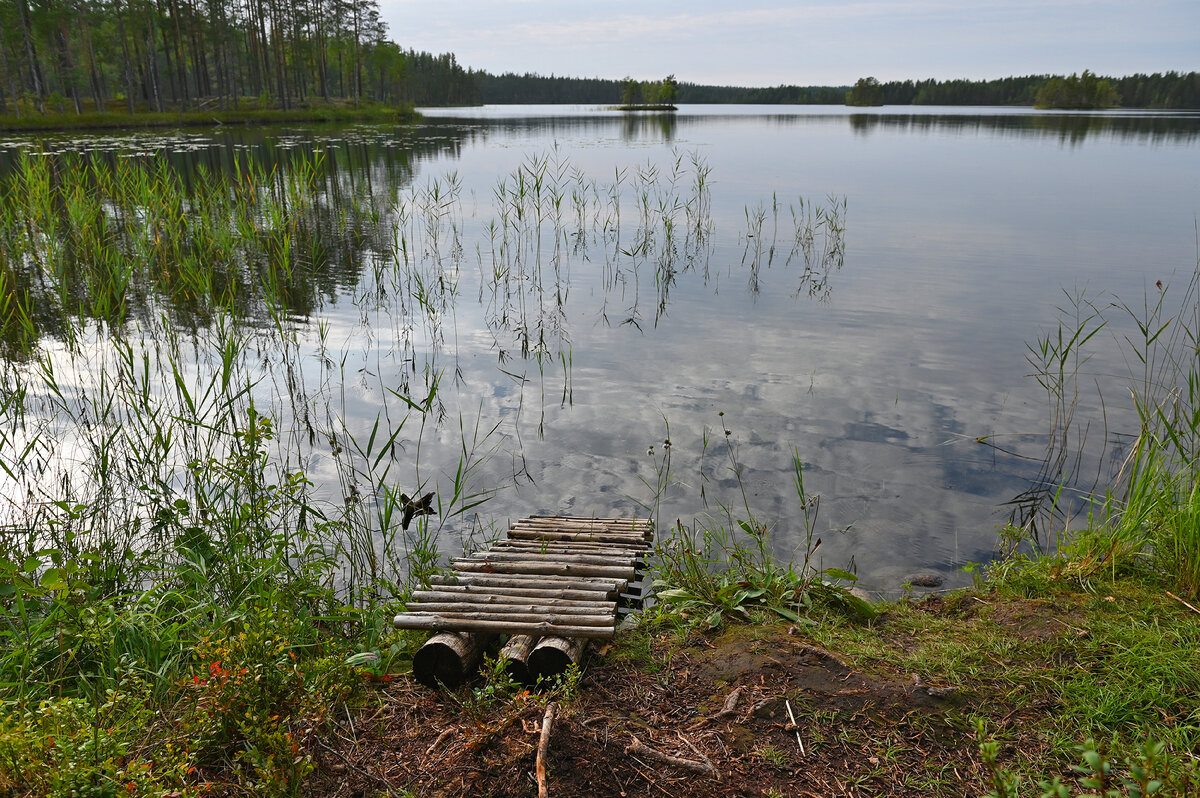 Лес в этих местах сосновый и светлый, озера с абсолютно прозрачной водой, и много островков с небольшими соснами – виды шикарные. А в лесу – полно ягод. Черника, брусника и голубика растут везде, где-то уже подсобраны, но когда выходишь туда, где людей не было – от них в глазах рябит.