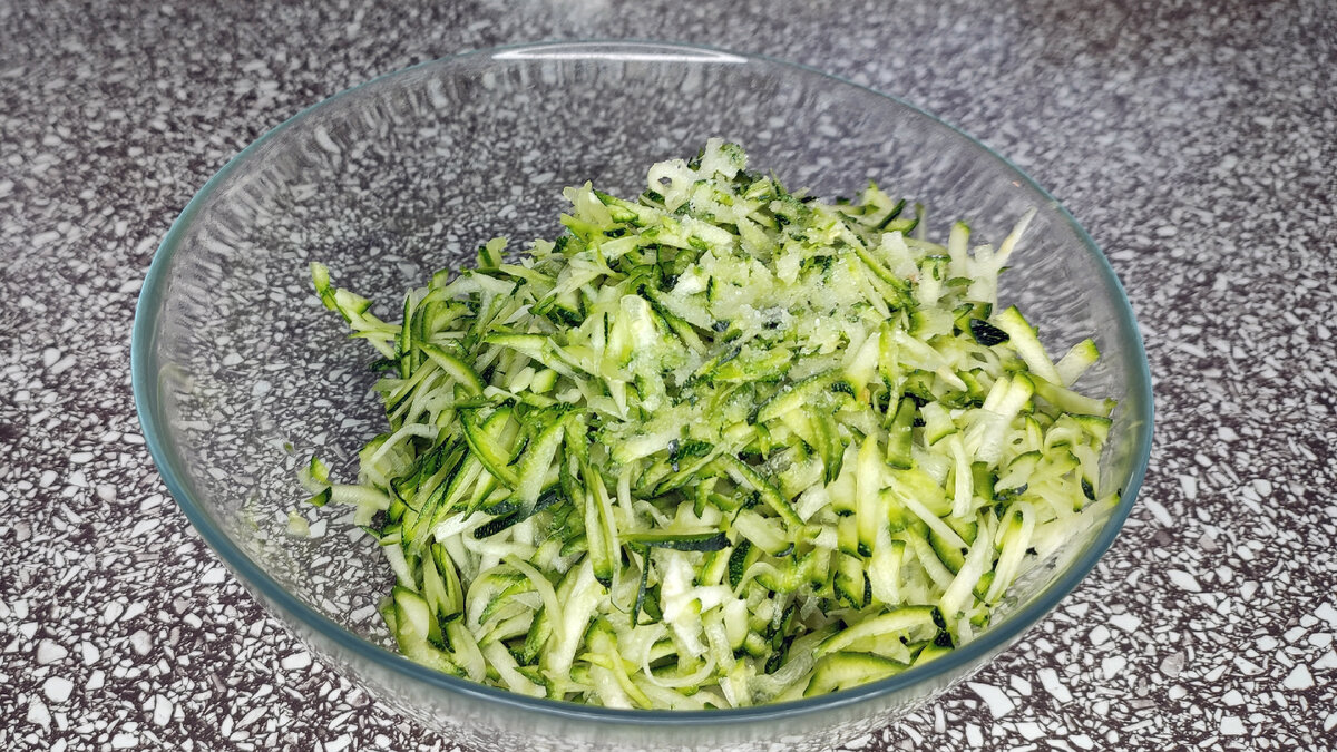 Здравствуйте, дорогие читатели. Сегодня я готовлю очень вкусное блюдо, которое напоминает беляши, только тесто в них кабачковое с минимальным содержанием муки. На мой взгляд это даже вкуснее, чем классические беляши. С этим блюдом легко худеть. Попробуйте и оцените сами. ✅Начинаем с кабачков. Натираем его на крупной тёрке, добавляем немного соли и оставляем на 5-10 минут, чтобы кабачки отдали лишний сок. ✅В это время занимаемся начинкой. Берём говяжий фарш, с ним получается намного вкуснее. Количество фарша я обычно беру из расчёта 100-120 гр. на одну порцию. Добавляем к нему натёртый на тёрке или мелко порезанный лук, соль и перец по вкусу. С помидора снимаем шкурку и нарезаем его мелко. Можно так же натереть томат на тёрке. Выкладываем томат на сковороду, даём ему закипеть и добавляем фарш. Тщательно перемешиваем. Готовим 10 минут до полного выкипания жидкости. В самом конце в начинку добавляем дольку чеснока. ✅ Кабачки отжимаем от лишней жидкости, но сок не выливаем, он нам пригодит