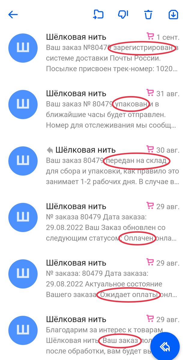 Не будет громких заголовков, но следующая информация будет шокирующей 😅. Я довольно много вышиваю авторских схем, но НИКОГДА не заказывала ткани в интернет магазине "Шелковая нить". Были различные совместные закупки, офлайн магазины, маркетплейсы, подарки, но до ШН не доходили руки. В магазине есть канва, бисер, мулине, наборы, схемы, аксессуары и многое другое. ❗Накопительная скидка не предусмотрена, скидка от величины заказа тоже, но есть вкладка с акционными товарами. Буквально пару дней назад в наличии появился кусочек равномерной основы, необходимый мне, и я его заказала 🙂. ✅ На электронную почту приходят оповещения о всех стадиях заказа. Принят, ожидает оплаты, оплачен, передан на склад, упакован, зарегистрирован в системе доставки. В последнем сообщении трек-номер для отслеживания. P.S. Я выбрала доставку почтой России, как самую выгодную. Есть различные транспортные компании. Можно выбрать самовывоз и забрать в Москве, где-то в районе м.Новогиреево. ✅ Трек-номер можно не