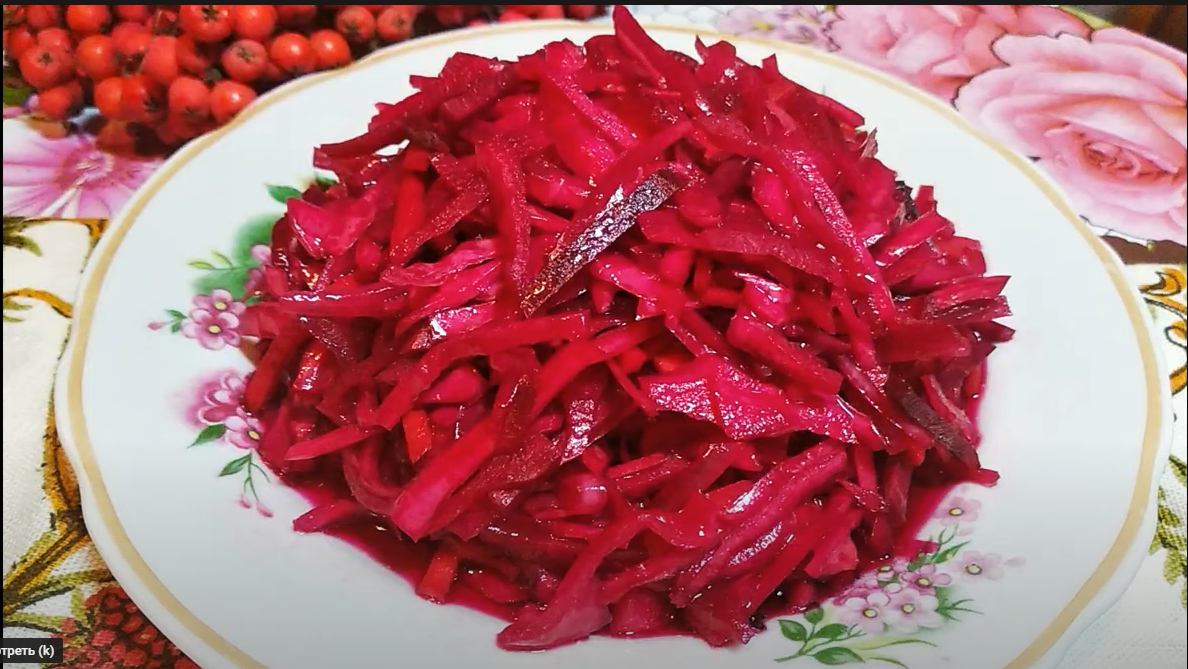Здравствуйте, дорогие хозяюшки! Самое время приготовить КРЕМЛЁВСКУЮ ХРЯПУ. Этот салат известен с советских времён, но я об этом рецепте узнала только в прошлом году и он стал одним из моих любимых салатов. Кремлёвская хряпа - это такая закуска, которую можно готовить всю зиму и она вам не надоест. Рецепт закуски отличается тем, что все овощи нарезаются ножом очень тонкими полосками. А в маринаде нет никаких специй и пряностей. Капуста получается очень хрустящая, вкусная и красивая. Подавать её можно и в будние дни и на праздничный стол. А ещё, говорят, что это был любимый салат Брежнева... Для приготовления нам понадобится: -Капуста - 1 кг -Свёкла - 1 шт. -Морковь - 2 шт. -Лук - 2 шт. -Вода - 3 стакана -Сахар - 15 ч.л. -Соль - 1 ст.л. -Уксус столовый - пол стакана -Масло подсолнечное нерафинированное - 2/3 стакана 1) Капусту нашинковать как можно мельче. 2) Лук, морковь и свёклу нарезать соломкой. В идеале не толще спички. 3) Смешать все овощи в кастрюле. 4) В отдельную кастрюлю налить