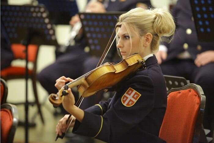 Привет дорогие подписики. Вы только посмотрите какие красотки служат в армии Сербкой республики. Скрипачка военного оркестра Боевые подруги. Интересно какой род войск. Красотка в камуфляже мультикам Интересные уних ломпасы на штанах наверное генеральши Что то подписывает наверное приясгу Вообще боевая девушка, я так понимаю танкист. За спиной кажется Т-62 Гдето на учениях Почетный караул Сербии Как Вам подборка? Согласитесть заслуживает "Класс".