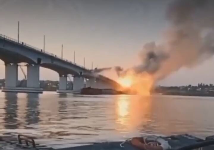 Момент ударов по Антоновскому мосту сняли с паромной переправы