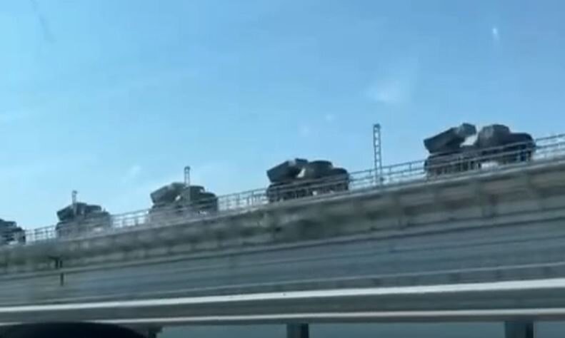 Эшелон с более, чем 40 единицами военной техники, замечен на Крымском мосту