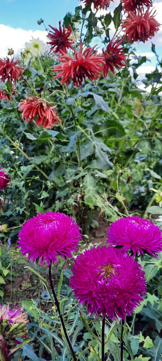 Всем доброго времени суток! Вчера забежала к нашей соседке в гости на минутку,но не могла уйти от нее очень долго.Любовалась ее осенней клумбой. Хочу и с вами,друзья,поделиться такой красотой. Очень красивые георгины и астры. Амарант на фоне агератума. А рудбекия красиво смотрится и с георгинами и с розами. Желтые циннии и низкорослые бархатцы высажены вдоль теплицы. Милая осенняя красота в огороде. Друзья,поделитесь фото с вашими осенними цветами и клумбами.Очень хочется посмотреть и на ваши красивые осенние цветники. Буду ждать ваши фото и комментарии. До новых встреч!
