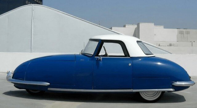 Этот странный трехколесный автомобиль появился через пару лет после окончания Второй мировой войны в США. Кузов-кабриолет имел «авиационные» аэродинамические формы и изготавливался из алюминия. Фишкой Davis Divan стало единственное длинное сидение, но для 4 человек.