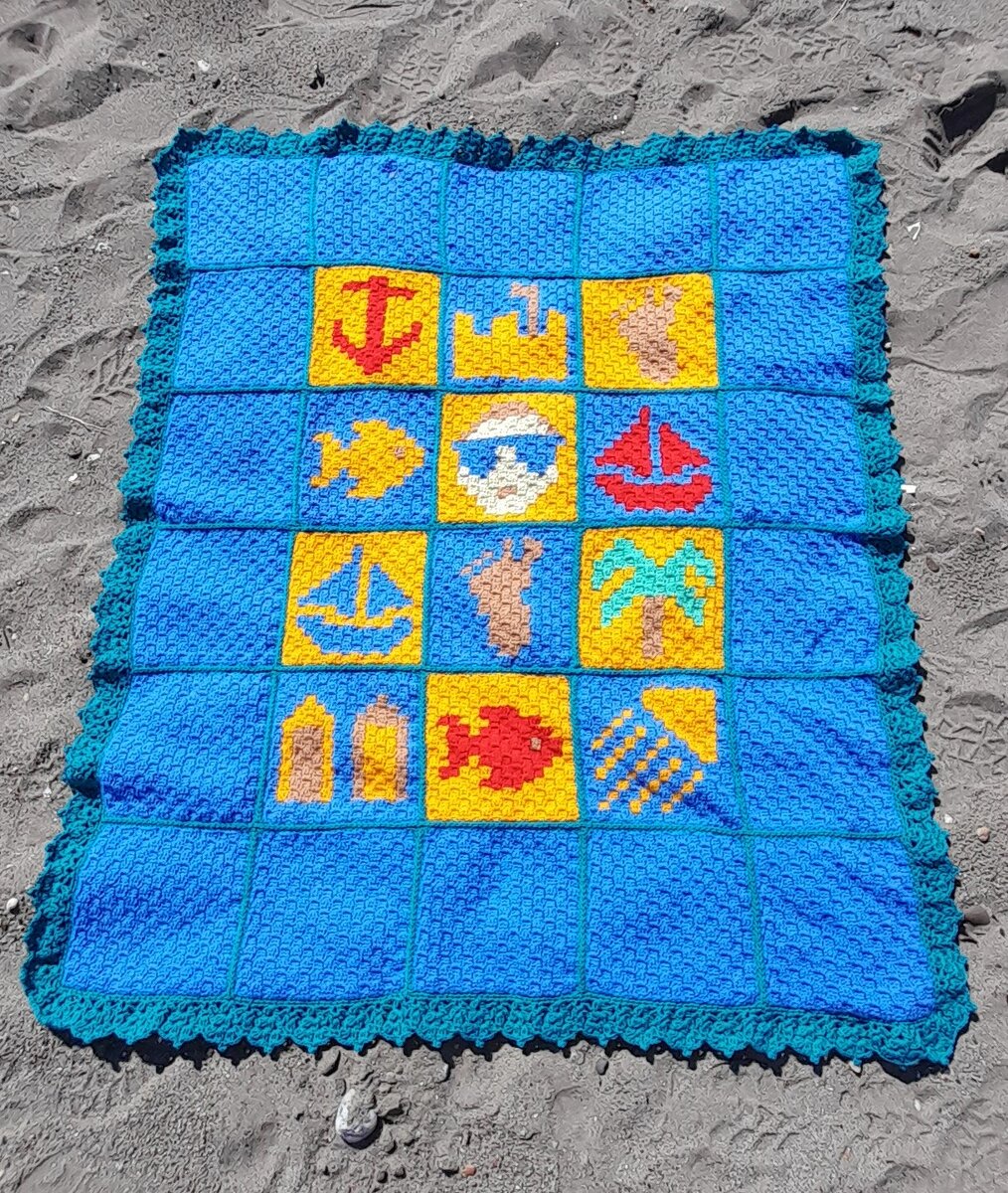 Сегодня хочу показать свой плед для пляжа, выполненный в технике С2С. Если вы раньше не слышали о вязании крючком c2c, сегодня настал день, чтобы о нем узнать. Такое вязание называют "из угла в угол", другие названия данной техники: пиксельное вязание, вязание по диагонали или С2С - corner to corner на английском языке. Угловое вязание крючком (c2c) — это техника, которая работает именно так, как звучит: вы вяжете маленькие «плиточки» по диагонали, увеличивая каждый ряд на одну плитку, пока ваш проект не станет достаточным по высоте и ширине, после чего вы начинаете уменьшать ряд. Таким образом, надо научиться вязать прямоугольник (или квадрат) крючком — это основной навык, который вам нужно освоить. Любой проект вязания крючком от угла к углу всегда будет начинаться с прибавочных рядов. Вы будете увеличивать на одну плитку в каждом диагональном ряду, пока не достигнете желаемого размера, а затем начнете уменьшать. Так выглядит схема вязания в технике С2С. Графики от угла к углу обыч