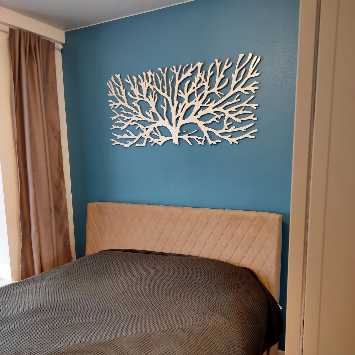 Заказ этот планировался ещё в мае. Но у клиентки возникли временные трудности. И вот в сентябре, мы снова встретились и сделали панно. Панно делали под индивидуальные размеры. Доставка и монтаж тоже на нас. Повесили за 10 минут без единой лишений дырки. В восторге остались все