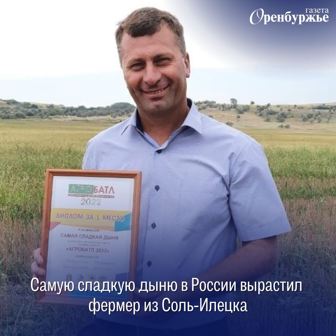 Фермер из Соль-Илецка Виталий Мокрушин стал победителем в номинации «Самая сладкая дыня». Результаты конкурса стали известны 4 сентября.