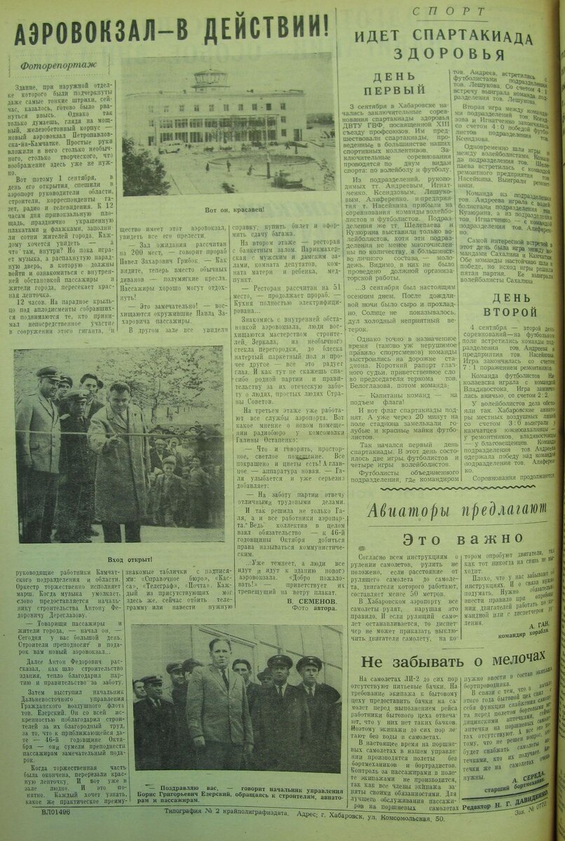 7 сентября 1963 года многотиражная газета Дальневосточного территориального управления ГВФ «Тихоокеанский авиаработник» написала большой репортаж об открытии нового аэровокзала в аэропорту Петропавловск-Камчатский. Торжественное открытие здания состоялось 1 сентября 1963 года. Предлагаю вам прочитать этот репортаж в оригинале. Изображение кликабельно. Приятного просмотра!