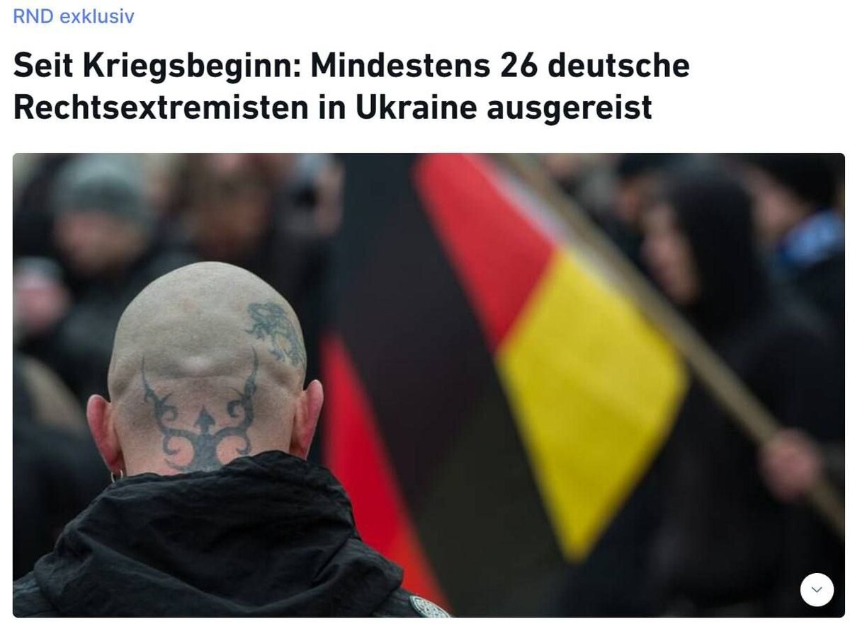 Из Украины в Германию возвращаются правые экстремисты Только по данным МВД страны, с начала войны вернулось 26 неонацистов, пишет RND. Депутат Бундестага Мартина Реннер полагает, что их реальное число выше официальных данных. "В Германии существует угроза общественной безопасности, если неонацисты вернутся из Украины с боевым опытом и, возможно, оружием и боеприпасами", - заявила Реннер. Левая группа в Бундестаге опасается, что экстремисты, возвращающиеся из Украины, могут поставить под угрозу общественную безопасность. Именно это депутатское объединение и инициировало запрос в МВД.