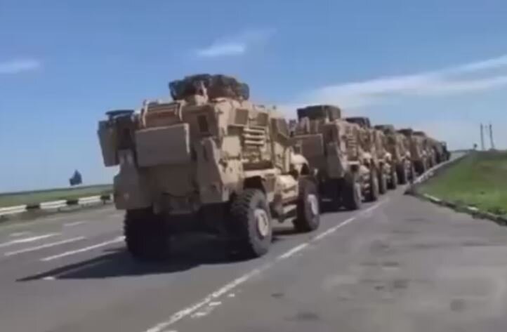 500-метровая колонна американских бронетранспортёров M1224 International MaxxPro пересекла границу с Украиной