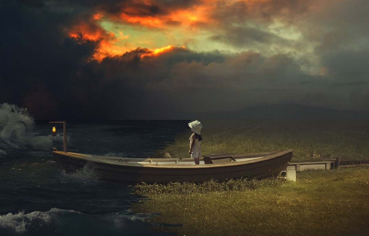 И тут одна звездочка сорвалась с неба и полетела за горизонт, лодка прониклась увиденным и решение было принятым, без сомнений и страха, плыть за горизонт. И она поплыла, и р