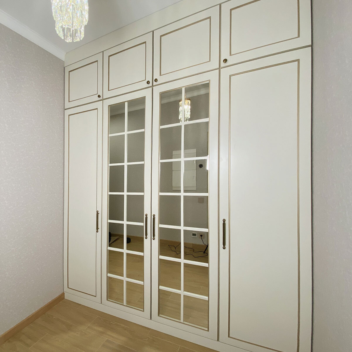 Не всем нравится видеть одно и то же во всех комнатах своей квартиры. Скажем одинаковости нет, а единству стиля - да! Но начнем с начала: нам нужно было сделать три шкафа (и одну гардеробную) в квартиру - все шкафы должны сочетаться между собой, но при этом требования к каждому были разные. Что мы в итоге предложили и как реализовали проект - в сегодняшней статье. Во-первых, для всех шкафов мы в качестве материала взяли МДФ, крашеный в один и тот же тон. Почему? Потому, что МДФ даже при разных отделках и фрезеровках задает основу общего для всей мебели стиля.