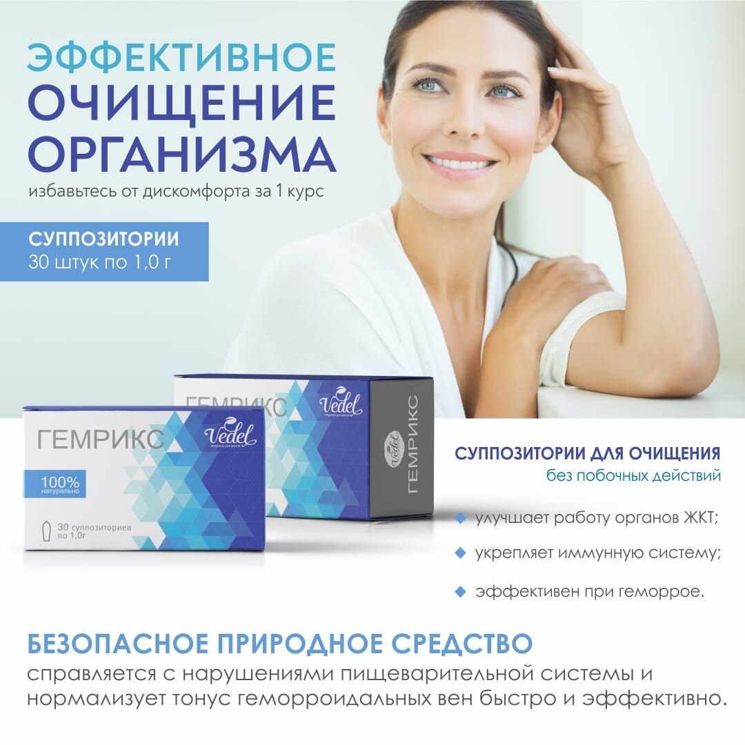 *🍃ГЕМРИКС🍃* _УЛУЧШАЕТ РАБОТУ ОРГАНОВ ЖКТ \ УКРЕПЛЯЕТ ИММУННУЮ СИСТЕМУ \ ЭФФЕКТИВЕН ПРИ ГЕМОРРОЕ_ *Зашлакованность организма и нарушение пищеварения приводит к таким последствиям как:* - Самоинтоксикация всего организма - Болезни сердца - Угнетение нормальной работы органов малого таза, почек и печени - Нарушение дыхания - Головные боли - Возникновение онкозаболеваний - Ускорение старения организма - Ослабление иммунитета Суппозитории «Гемрикс» способствуют: - очищению и выведению из организма токсинов - укреплению иммунной системы - устранению симптомов геморроя - улучшению работы органов желудочно-кишечного тракта - заживлению трещин, ссадин, эрозии прямой кишки - нормализации реологии крови - улучшению тонуса вен и венозного кровообращения - устранению кишечных инфекций, отеков прямой кишки - профилактике опухолевых процессов органов пищеварительной и мочеполовой систем - устранению герпесвирусной и венерической инфекций - предотвращению патологии вен и тромбозов при беременност