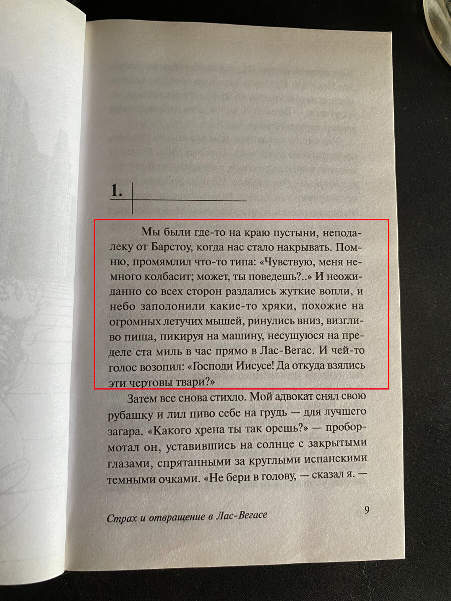 В этом примере я читаю «Страх и отвращение в Лас-Вегасе » Хантер С. Т.