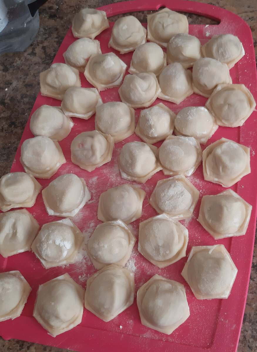Пельмени - это блюдо, которое занимает особое место в сердце россиян и не только. В разных странах есть аналоги этого блюда с другими названиями. Приготовленные дома пельмени отличаются особыми вкусовыми качествами, которые не сможет заменить ни одна производственная марка. Рассказываю рецепт самых простых и вкусных домашних пельменей. Их можно приготовить сразу с запасом и хранить в морозилке достаточно долго. Но обычно кончаются они очень быстро! Тесто для домашних пельменей. Это тесто подойдет так же для хинкалей и вареников. Потребуется примерно 500гр муки, 1 яйцо, половина чайной ложки соли и 150мл воды. Муку просейте в миску горкой. На верхушке сделайте углубление и вбейте в него яйцо. Размешайте все ложкой. Соль полностью растворите в теплой воде, а затем вливайте воду в муку, постепенно перемешивая. Когда масса загустеет, вымешивайте ее руками около 15 минут. Затем дайте тесту настояться в течении получаса под крышкой. Начинка для пельменей. Потребуется 300гр говяжьего фарша, 3