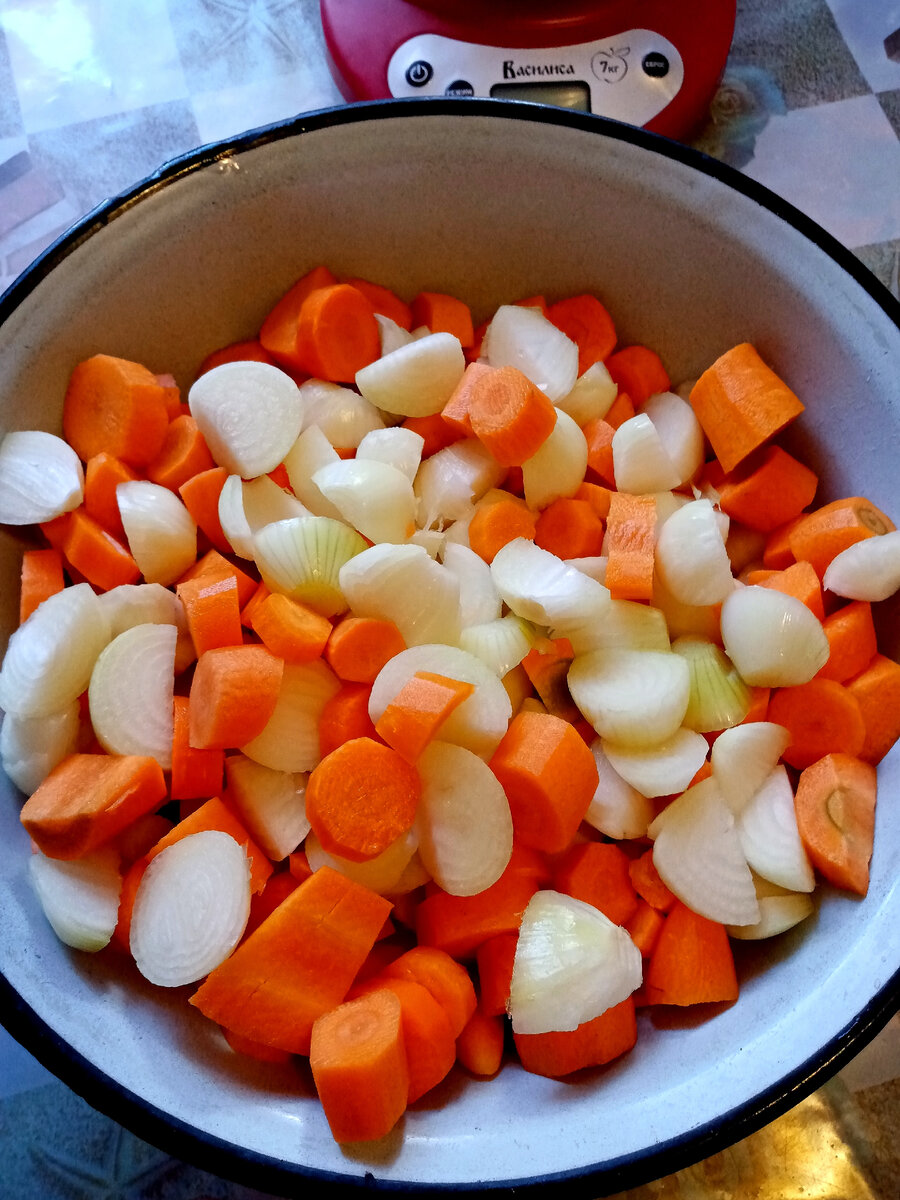 Здравствуйте, дорогие подписчики и гости моего канала)) У меня продолжается кабачковый марафон и пришёл черед кабачковой икры - куда же без неё. Сегодня я расскажу и покажу вам свой рецепт, которым пользуюсь третий год, до этого какими только способами я не делала икру, всё не то, а вот этот прижился и всем нравится. Для приготовления "Кабачковой икры" нам потребуется: кабачки - 3400 гр; лук - 800 гр., морковь - 800 гр., соль 30 гр., сахар - 3 ст.л., паприка - 1,5 ст.л., перец черный - 1 ч.л. , перец красный - 1 ч.л., уксус - 2 ст.л., томатная паста - 310 гр., масло растит. - 230 гр. Приготовление: морковь и лук почистить и нарезать кубиками Протушить на растительном масле минут 20-25, затем добавить нарезанные кубиками кабачки, предварительно помыв, почистив и удалив семена Тушить на маленьком огне 1 час, периодически помешивая, можно добавить чуть-чуть воды, что бы не пригорало. Затем добавить томатную пасту, паприку, перцы, соль, сахар, всё перемешать и варить 20 минут, далее сня
