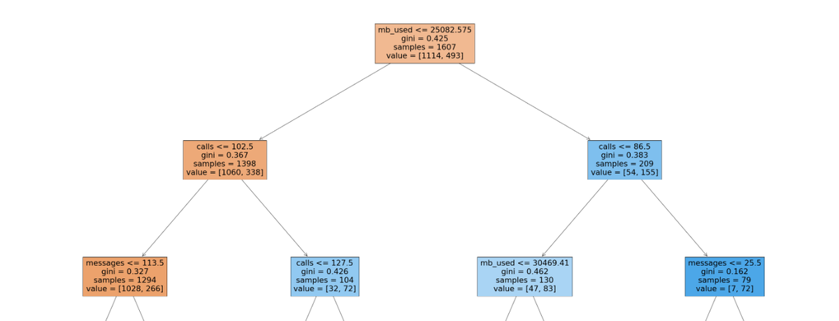 Описание проекта Оператор мобильной связи выяснил: многие клиенты пользуются архивными тарифами. Они хотят построить систему, способную проанализировать поведение клиентов и предложить пользователям новый тариф: «Смарт» или «Ультра». В нашем распоряжении данные о поведении клиентов, которые уже перешли на новые тарифы. Нужно построить модель для задачи классификации, которая выберет подходящий тариф. Предобработка данных не понадобится — сделана ранее в предыдущем проекте. Необходимо построить модель с максимально большим значением accuracy, и довести долю правильных ответов по крайней мере до 0.75. Проверить accuracy на тестовой выборке. Технический стек проекта pandas, sklearn, matplotlib, seaborn Описание данных Каждый объект в наборе данных — это информация о поведении одного пользователя за месяц. Известно: • сalls — количество звонков,