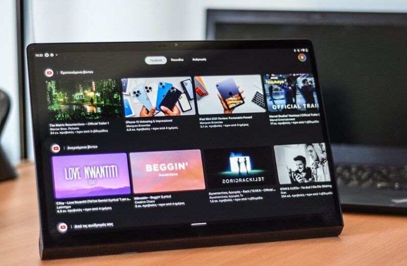 Lenovo Yoga Tab 13 – это не просто планшет, а скорее домашний большой умный экран для игр и фильмов. Учитывая его впечатляющие размеры, Tab 13 вполне может заменить второй телевизор. Во-первых, он отлично подходит для просмотра фильмов: экран обладает 2К разрешением, поддерживает HDR10+ и Dolby Vision. А ещё тут 4 громких JBL динамика. Во-вторых, тут чипсет Snapdragon 870, так что очевидно, что планшет потянет любые игры. В-третьих, удобная подставка-крючок позволяет установить планшет на любой поверхности или подвесить. Однако, помимо выполнения развлекательных задач, планшет вполне может работать в качестве второго экрана для ноутбука или PC. Подключение происходит через mini-HDMI порт. Попутно к планшету можно докупить стилус и использовать его для графических задач. Lenovo Yoga Tab 13 – это, пожалуй, домашнее решение, так как версий с мобильной сетью даже не подразумевается. Технические характеристики Lenovo Yoga Tab 13: - Процессор: Qualcomm Snapdragon 870 5G (7 нм), Octa-core (1×